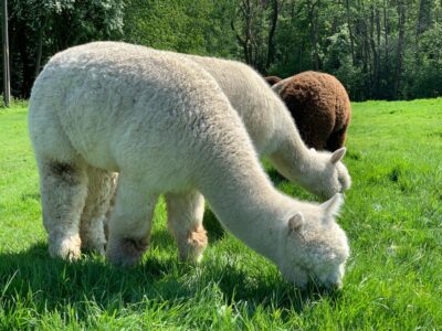 Alpacas are herd animals and happiest in groups where they communicate with one another in soft humming tones. Today alpacas are farmed across the world in a growing industry. The soft feet of Alpacas do not cause erosion and alpacas eat grass without pulling its roots, indeed owning alpacas is incredibly rewarding.